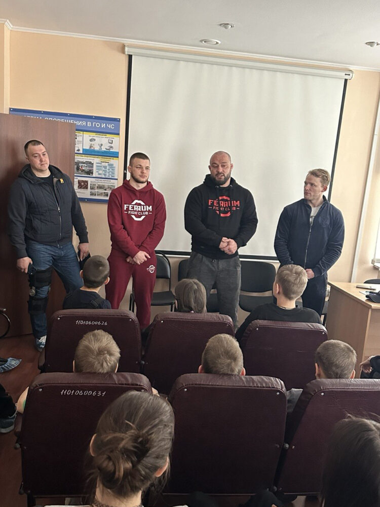Во время визита профессиональные спортсмены, участники ММА Юрий Федоров, Александр Дворцов и Яков Букин провели для ребят встречу в формате живого общения. Гости рассказали о значении спорта в жизни человека, продемонстрировали базовые элементы разминки и тренировочного процесса, а также поговорили с детьми о важности дисциплины, дружбы и стремления к здоровому образу жизни.